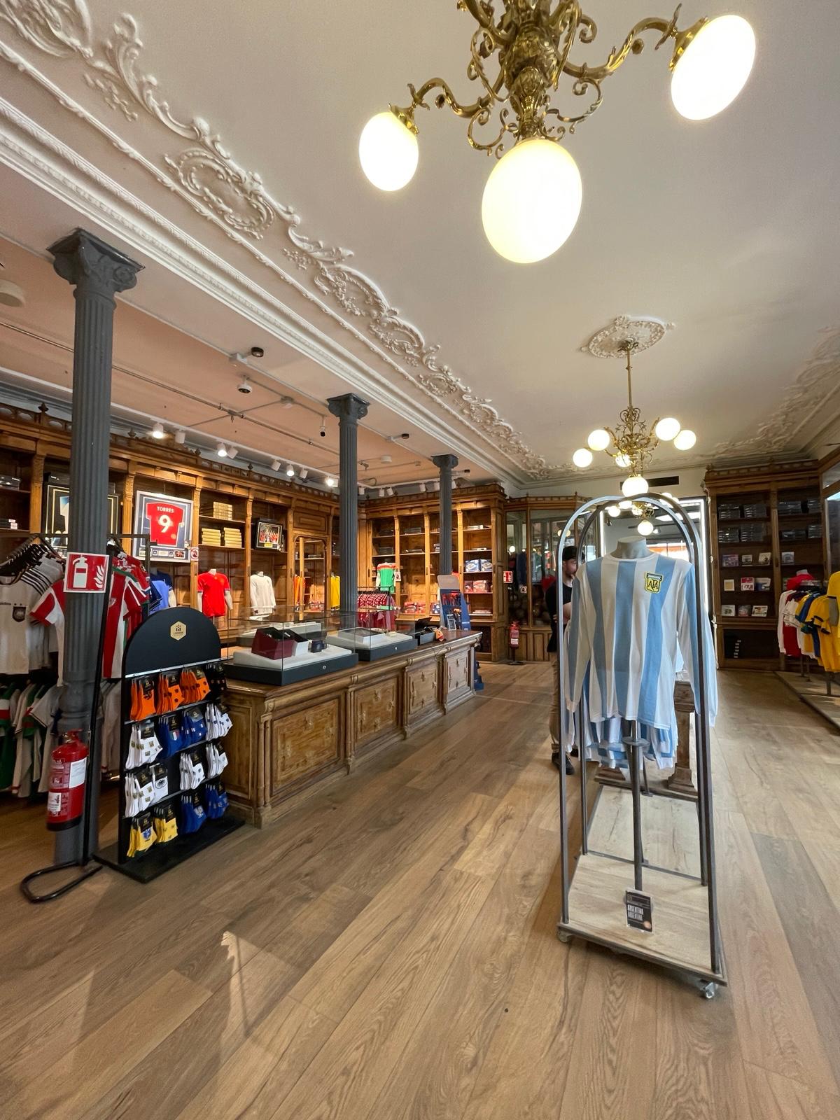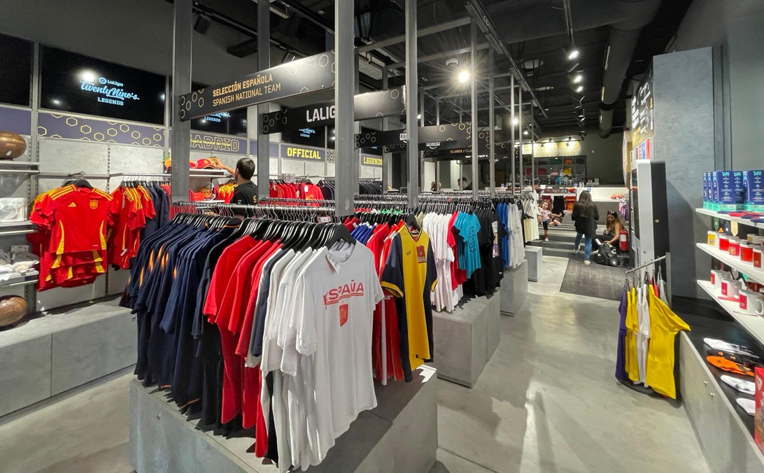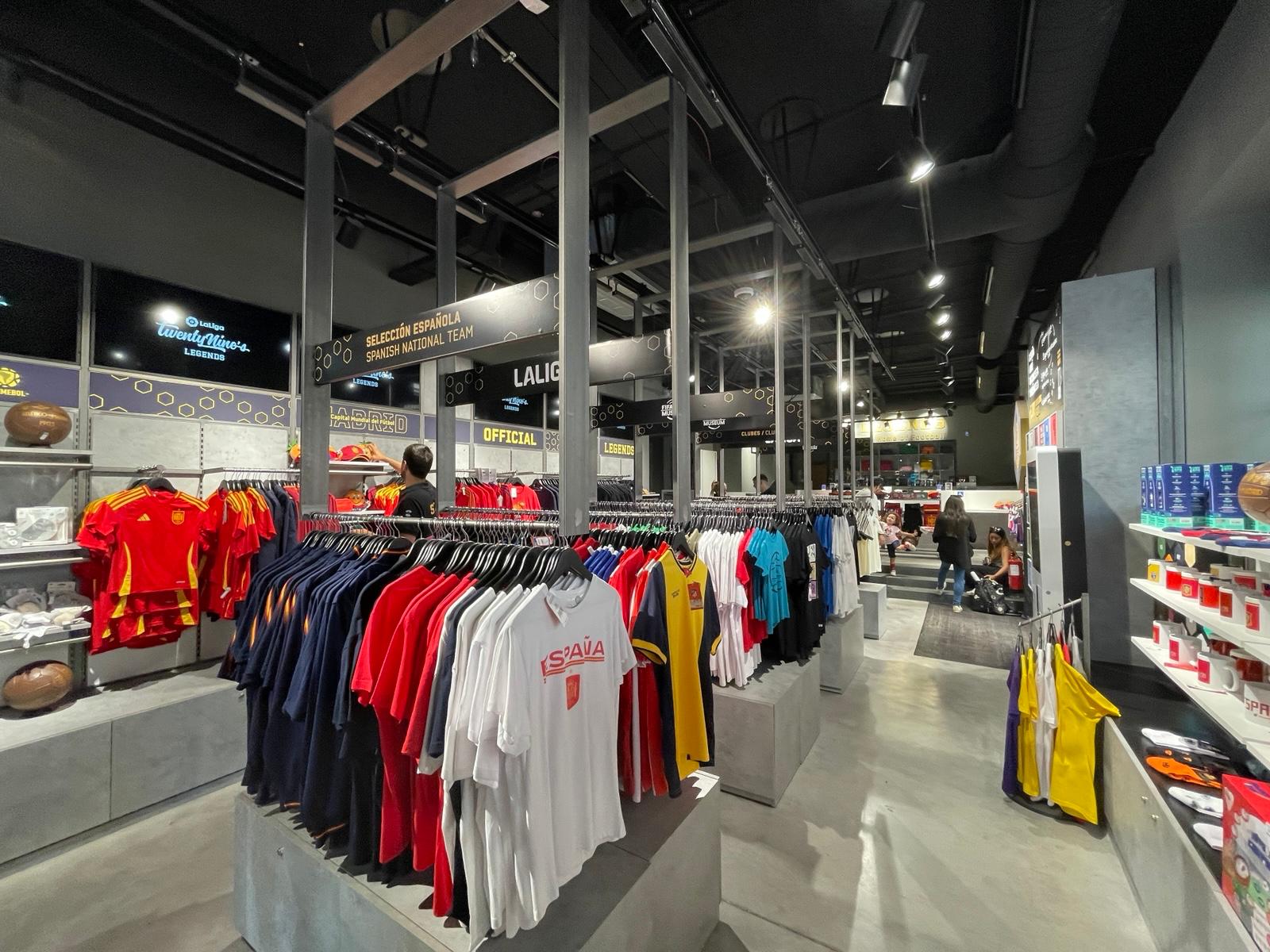 En los pocos días transcurridos desde su apertura, el Museo Legends, se ha convertido ya en uno de los destinos preferidos de los fanáticos del fútbol en la capital de España. La tienda está en la planta baja, del emblemático edificio en la Puerta del Sol (C/Carrera de San Jerónimo 2), y cuenta con más de 200m2 que harán las delicicias tanto de coleccionistas como de aficionados al deporte rey en general. En ella pueden encontrarse, por primera vez en España, productos oficiales de FIFA, UEFA, CONMEBOL o LaLiga, así como las réplicas oficiales Legends de camisetas legendarias como Holanda 74, Argentina 78, Inglaterra 66... réplicas de alta calidad, construidas a imagen y semejanza de las increíbles piezas que pueden verse en las 5 plantas de exposición que tiene el museo. Los aficionados podrán disfrutar de un ambiente exclusivo y contarán con la asesoría de expertos en merchandising deportivo para encontrar los artículos perfectos relacionados con su equipo o deporte favorito.