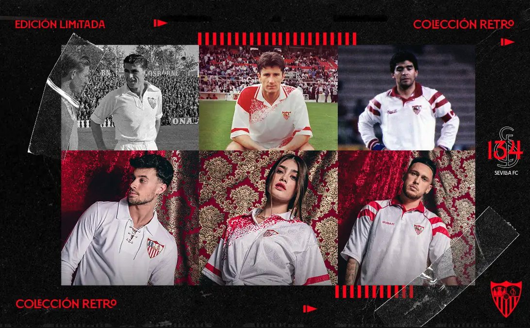 Esta colección incluye algunas piezas icónicas como la camiseta y chaqueta de la temporada 92/93 utilizadas por Maradona, la camiseta del 93/94 de Davor Suker o las de las finales de Glasgow 2006/2007 y Eindhoven 2004/2005.